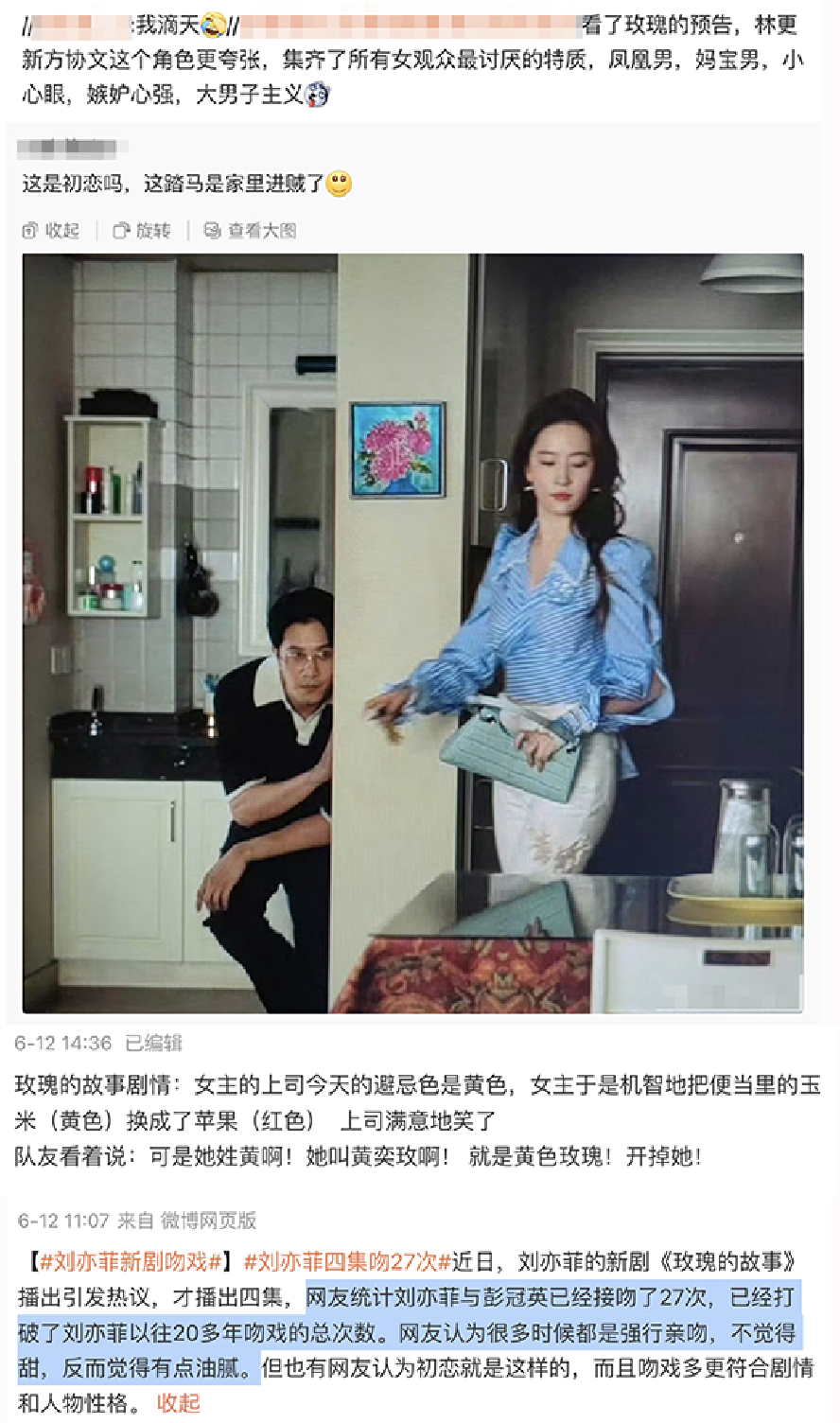 网友吐槽男伴、吐槽吻戏、吐槽职场戏