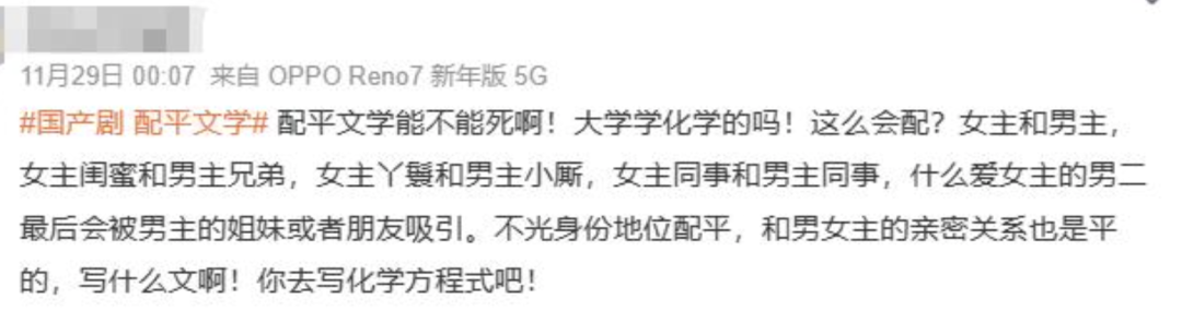 那些不合理的设置譬如“配平文学”,CP连连看,最后齐齐整整包饺砸。