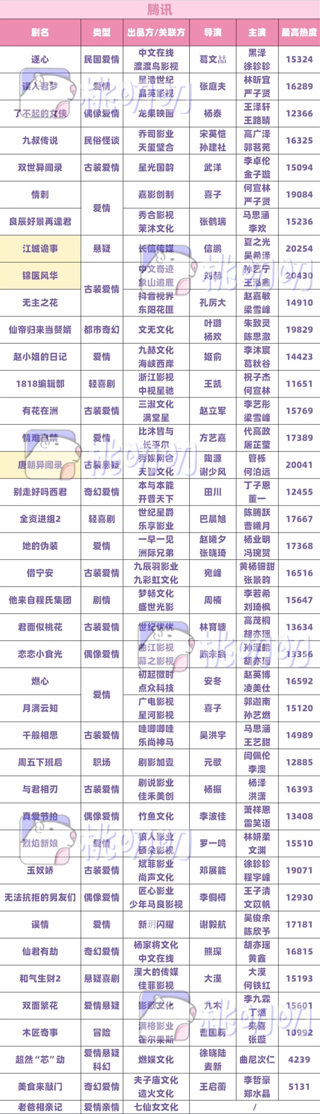 腾讯新上线的《流水迢迢》,有任嘉伦看起来有一定热度,但不少声音吐槽剧就像流水账。截止发布前最高热度25471,还没赶上《藏海花》,仍需努力。