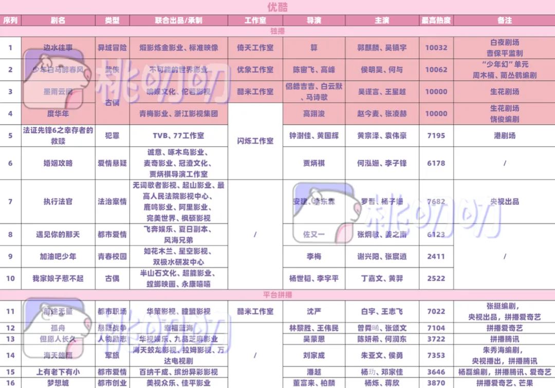 都市剧方面,优酷“向所有纯爱战士道歉”的《半熟男女》敢爱敢拍,爱奇艺《迎风的青春》在两代人的青春群像上,做出了国产版《请回答1997》的精彩,不过结局烂尾引争议,腾讯这边,张新成王玉雯的《舍不得星星》,让人好奇“异性兄弟”如何恋爱。
