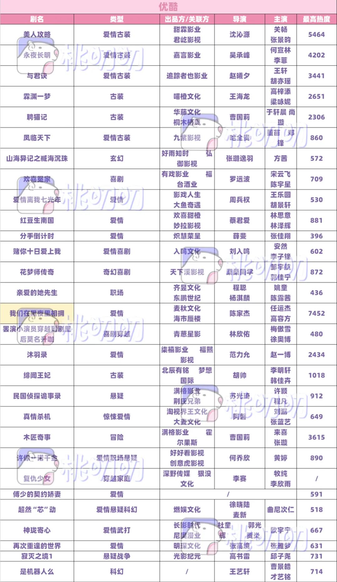 接下来,优酷即将上线《幻乐森林》(拼播爱奇艺)、《镇魂街之热血再燃》,腾讯则将推出炒了半年青梅竹马CP,张星成、王玉雯主演的《舍不得星星》,爱奇艺则有“迷雾剧场”《二十一天》待播。目前看来这些剧都有一定卖点,谁能跑出来?我们期待好内容的真迭代!