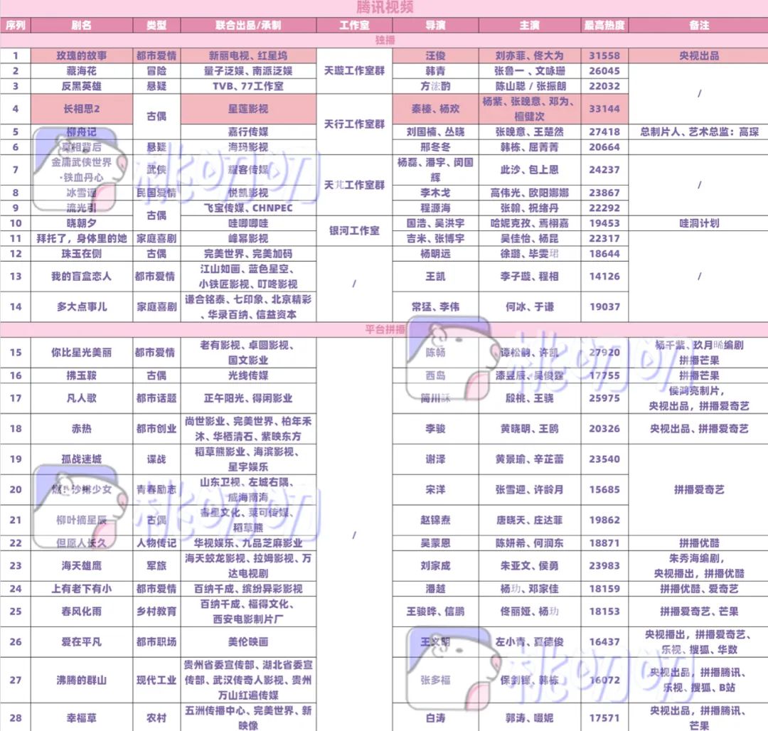 腾讯视频紧随其后共上线28部剧集,也是独播拼播各占一半。