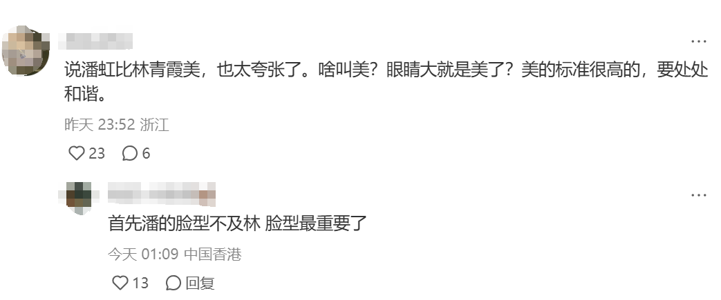 有人认为潘虹更美,优雅又端庄,颜值绝对不输林青霞,而且更有书卷气,这一点就比林青霞强。