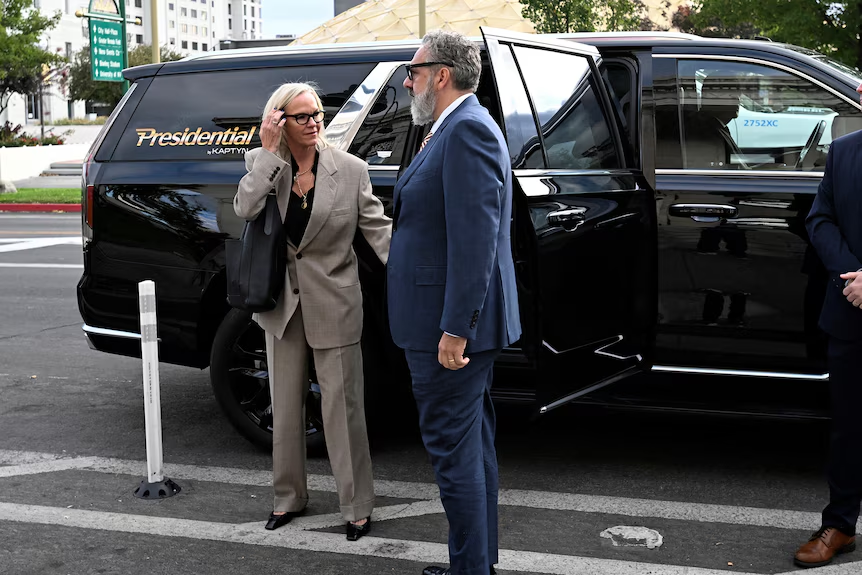 继承之战的几位主人公也悉数到场:默多克的长子拉克兰以及妻子萨拉,两人同样牵手出行,昭示着夫妻立场坚定,利益一体化。