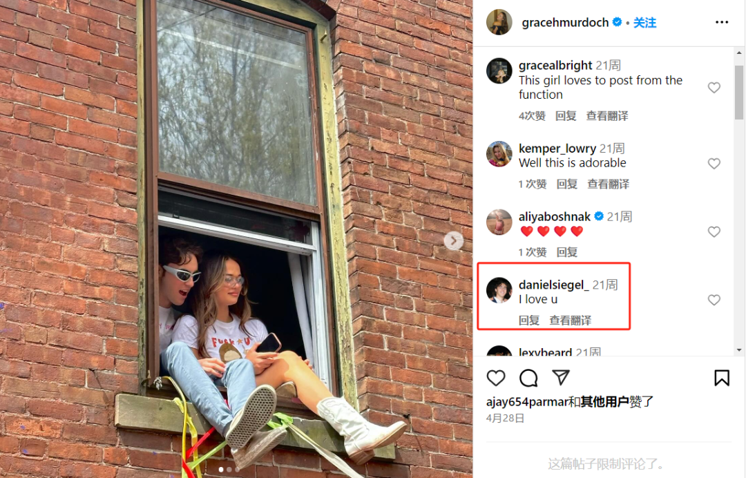 最近又换了新男友,这位boy名叫Daniel Siegel,同样是耶鲁的校友,两人大大方方互动表白。