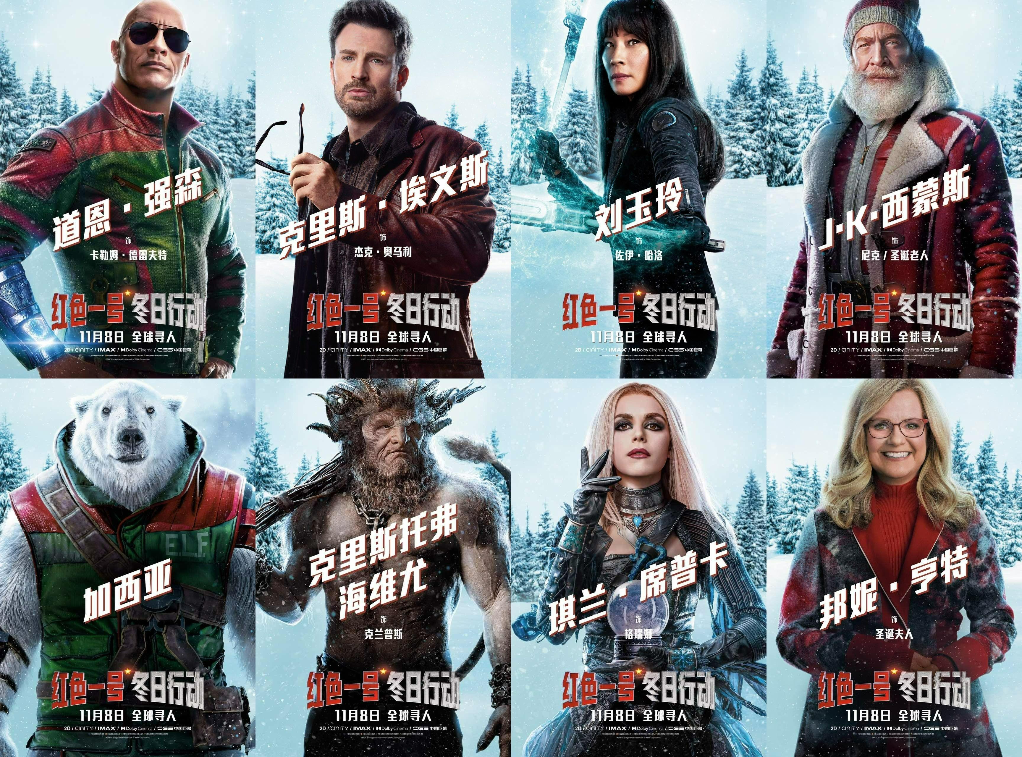 新京报讯(记者周慧晓婉)10月15日,动作奇幻喜剧电影《红色一号:冬日行动》发布一组中文角色海报,道恩·强森、克里斯·埃文斯、刘玉玲、J·K·西蒙斯等主演亮相。影片将于11月8日在内地上映,提前北美一周。