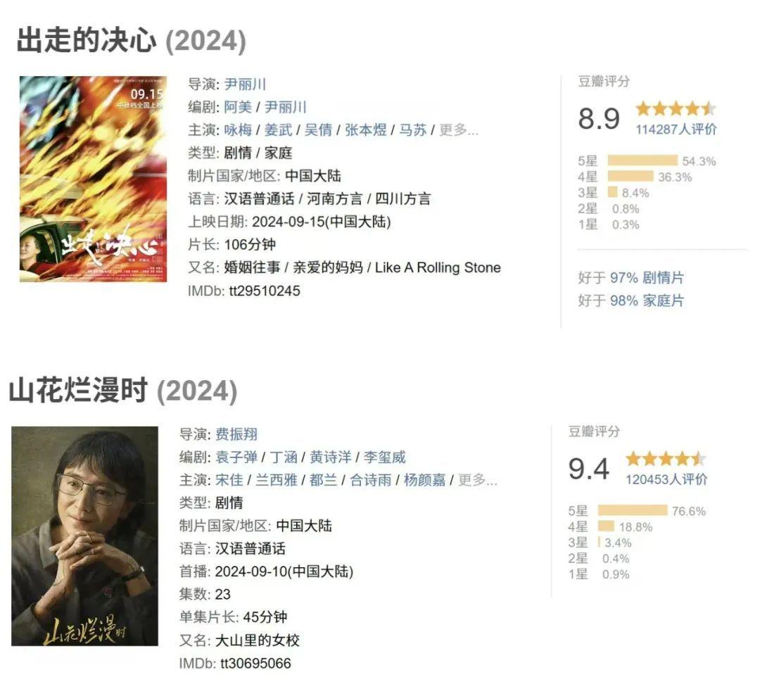 或许,女性题材作品的传播可以从《热辣滚烫》《山花烂漫时》等作品的成功中总结经验,期待未来的女性题材作品可以有更多的面向,在内容、话题上与观众有更加良性的互动,在商业上也有更大的收获。