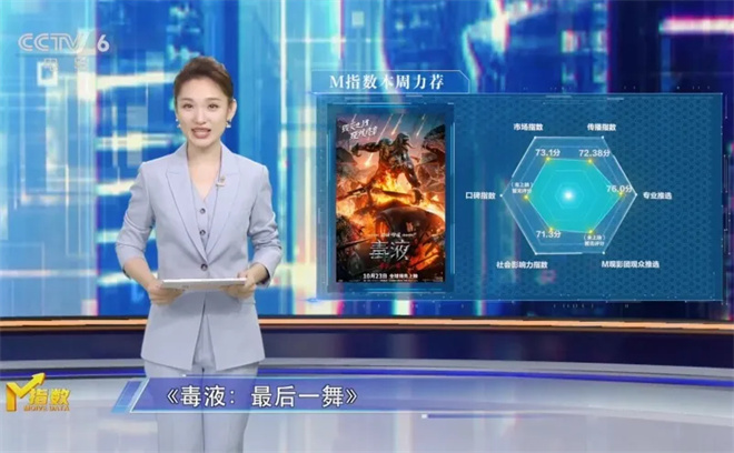传播热度榜方面,《毒液:最后一舞》虽然还未上映,但凭借发布的影片物料和新浪扫楼等宣传活动,并通过营销话题带动影片热度,夺得M指数-传播榜冠军。其中用户倾向指数单项指标第一,视频平台传播指数电影频道融媒指数单项指标前三。