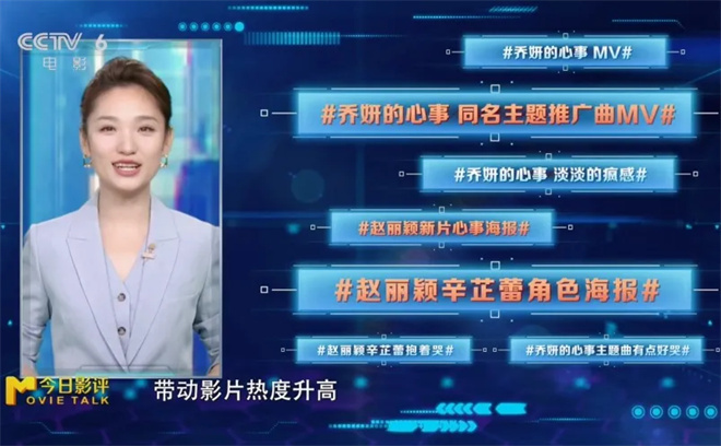 另外值得一提的是赵丽颖和辛芷蕾主演的待映影片《乔妍的心事》在传播指数中进入前六,其中该片视频平台传播指数单项指标第一,用户倾向指数单项指标第四。