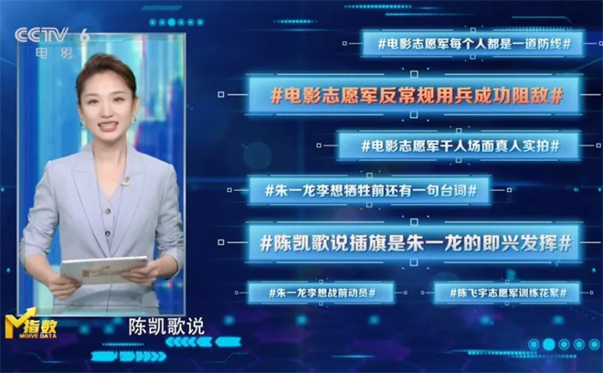 该片凭借电影志愿军反常规用兵成功阻敌电影志愿军每个人都是一道防线陈凯歌说插旗是朱一龙的即兴发挥。也正是凭借宣发内容的持续更新,以及口碑的持续发酵,让该片在上映三周后依然成为M指数-传播热度榜第二位。