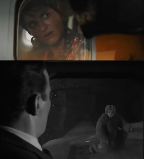 女性乘客看到毒液在机舱窗户外对她眨眼,则是致敬了1963年电视剧集《阴阳魔界》中的《两万英尺高空的噩梦》。