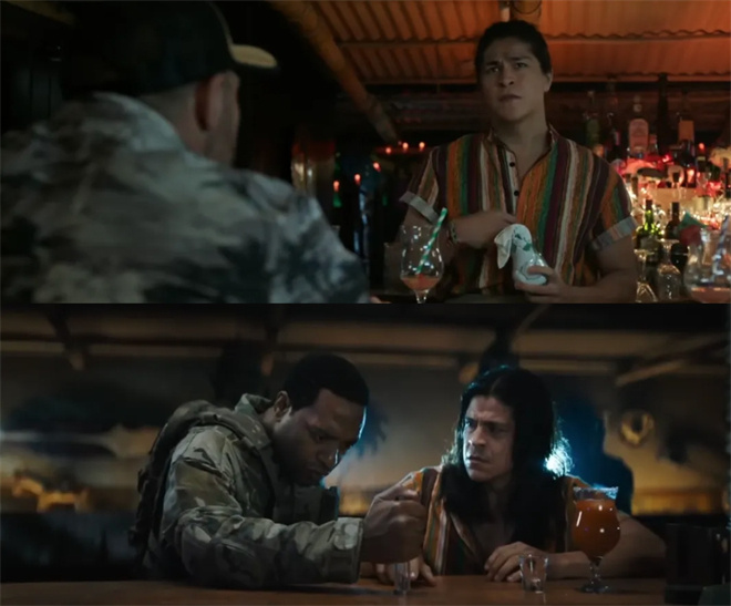 《毒液3》同样也从这一段开始,埃迪回到自己的宇宙后,同样身处这间酒吧,面对着另一版本的长发酒保,也留下了一些共生体细胞,最终被斯特里克兰将军采集走了。