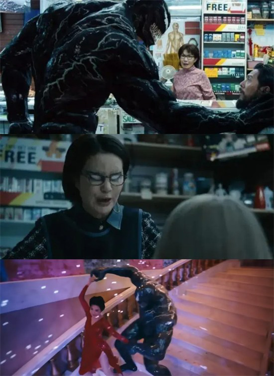 还记得便利店老板娘陈太太吗?从《毒液1》中看到毒液吃人目瞪口呆,到《毒液2》中短暂成为毒液的宿主,在第三部中,陈太太和毒埃cp的缘分继续升级,是最抢镜的路人角色没错了!