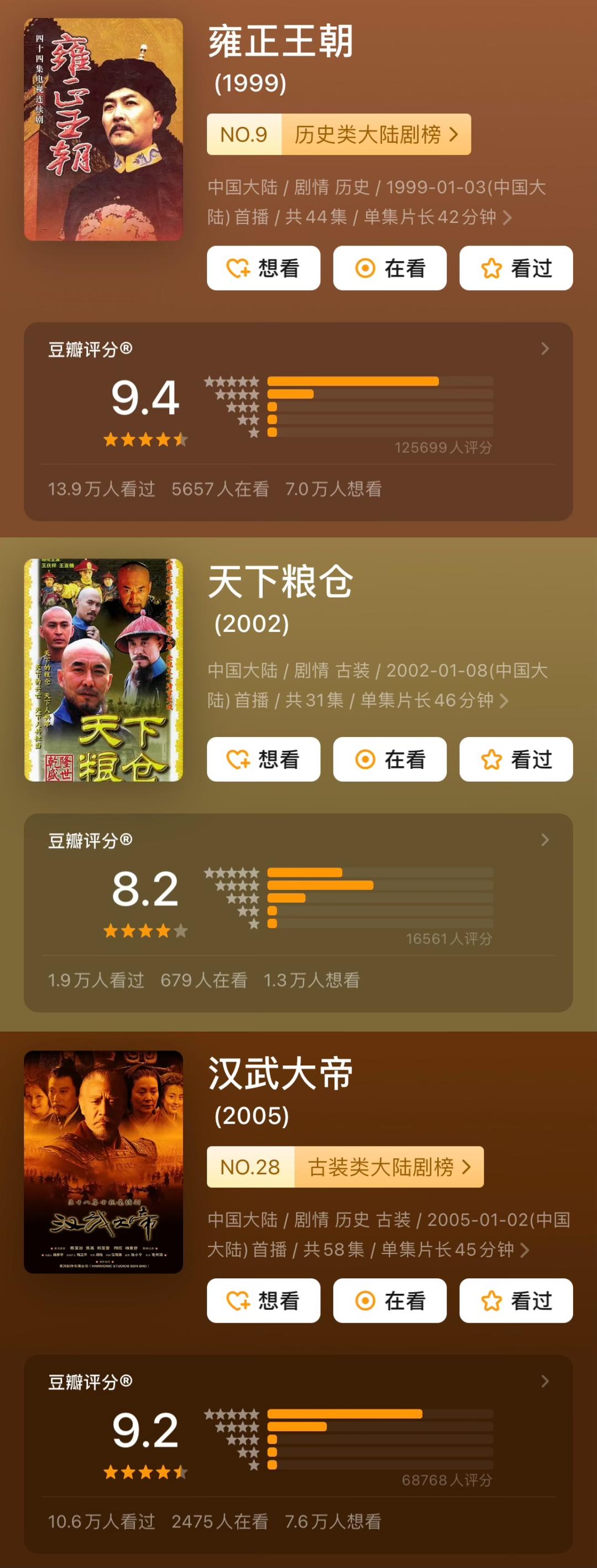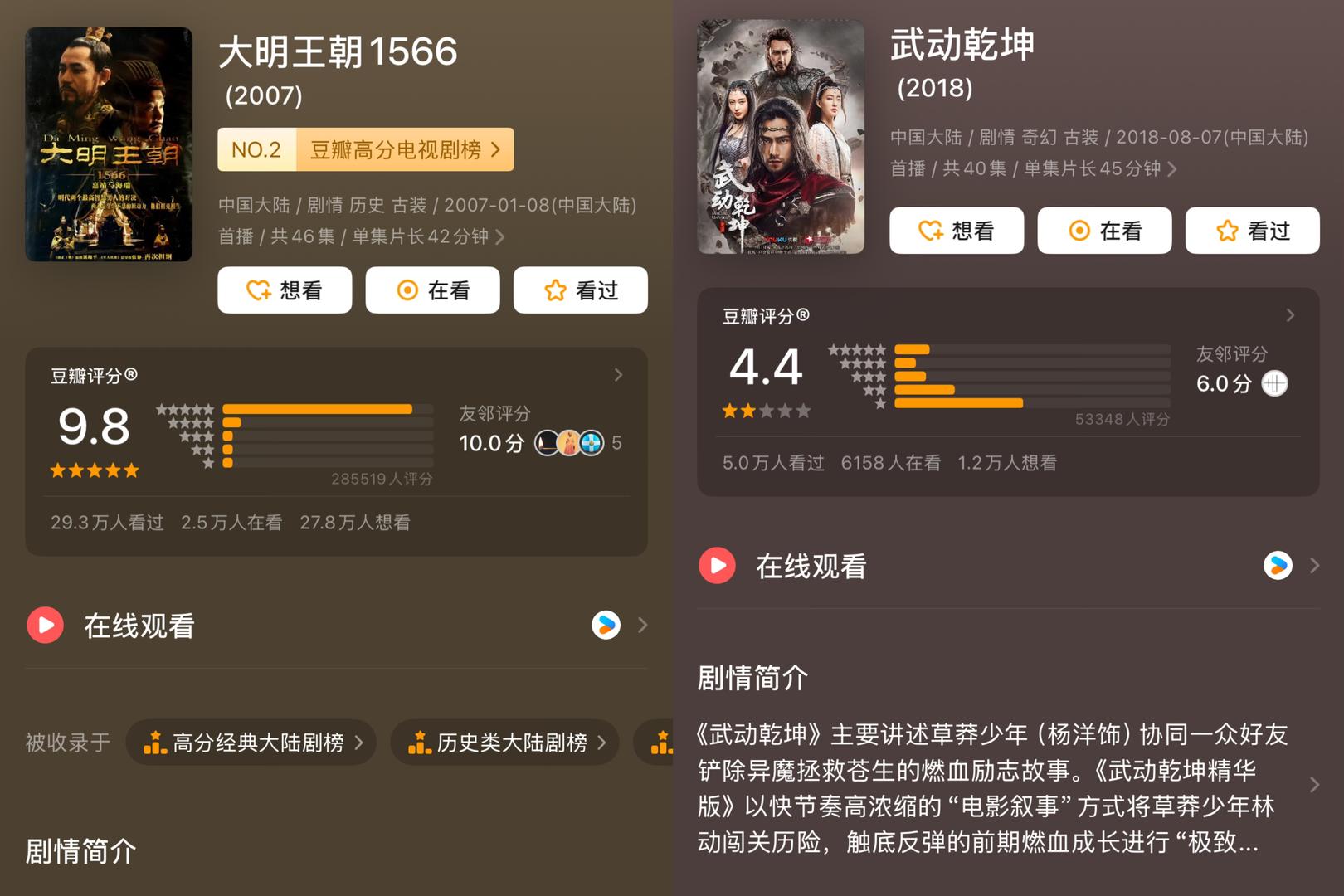 豆瓣国产剧评分体系下,《大明王朝1566》居首