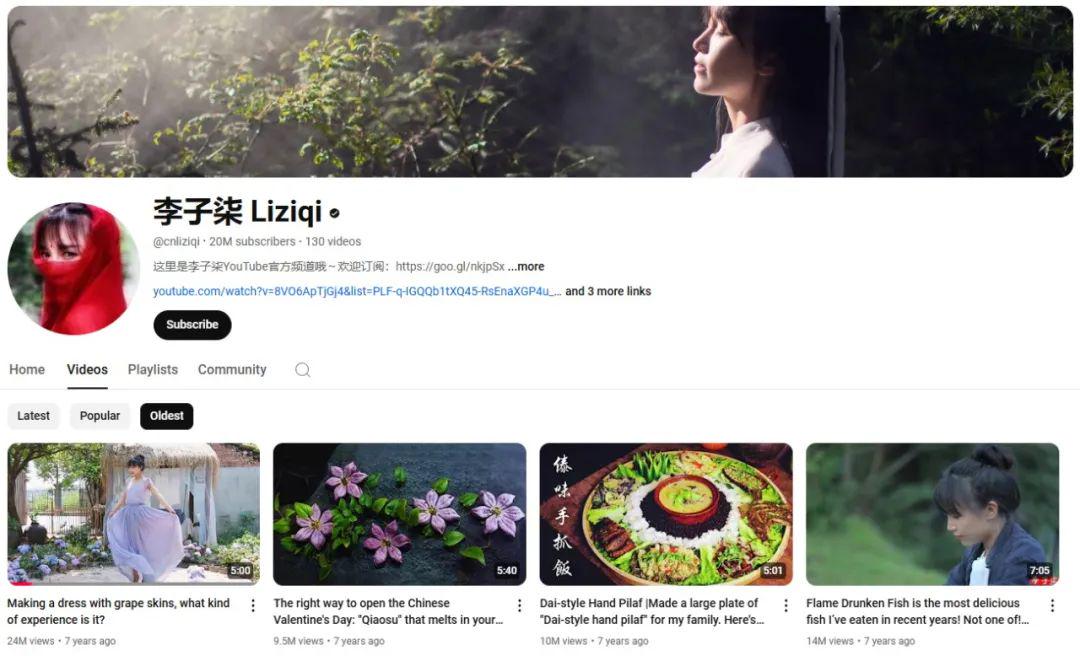 2017 年,李子柒在 YouTube 上发布了她的第一部视频,标题为“用葡萄皮做裙子”,受到了海外网友的热烈追捧: