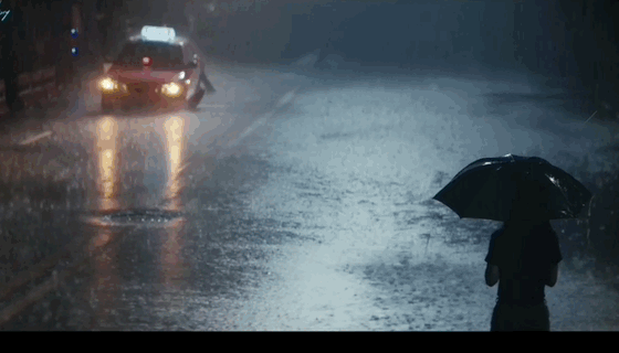 杨昭取快递,结果下大雨打不到车,这时陈铭生经过,让杨昭上了车。