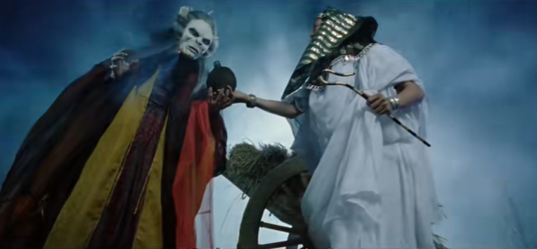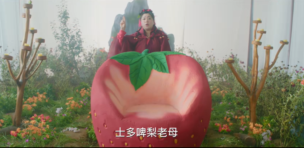 女主月光(张天爱 饰)的师父士多啤梨老母(蒋诗萌 饰)完美回cue了当年的菩提老祖。