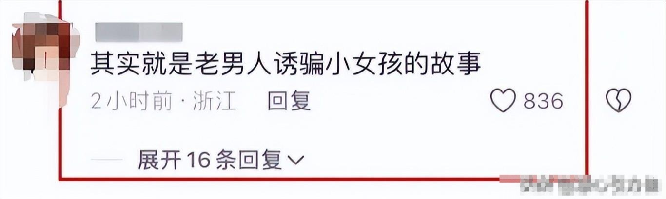 网友表示,这明显就是老男人诱骗小姑娘的故事。