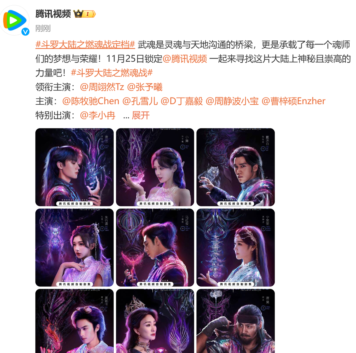 《斗罗大陆》的第二部《斗罗大陆之燃魂战》将于11月25日在鹅厂开播。