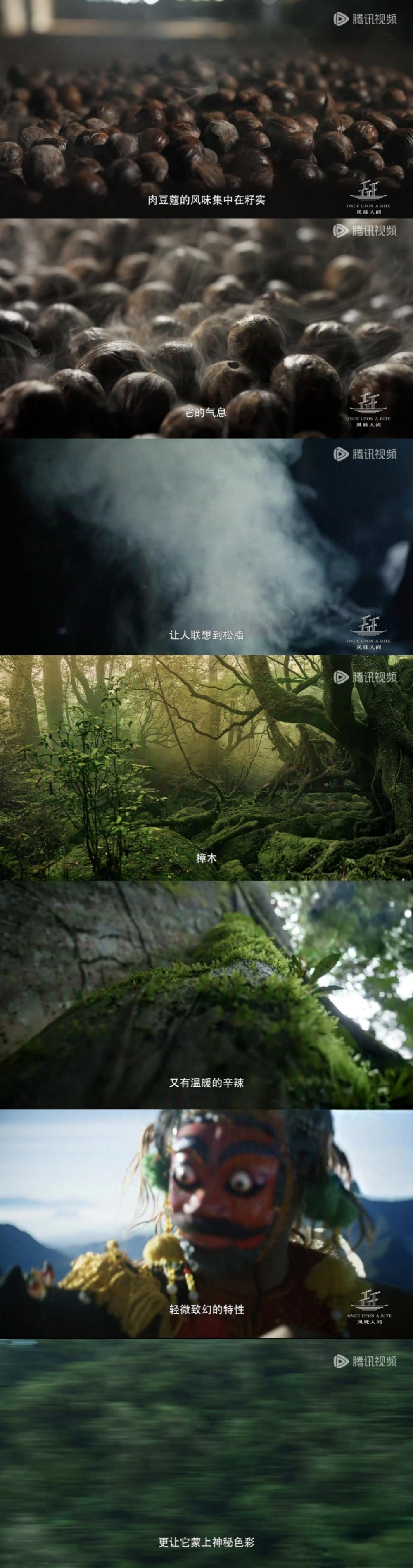 关于怎样“翻译”气味,总导演刘殊同介绍:“在表现小粒香料上,我们花了很多工夫去呈现它风味形成的过程,用延时拍摄植物的生长,用一些CG去表现它风味生成的关键的点——比如有开花的,有生长的,还有开裂的,甚至是变色等等的一些方式,让观众知道在这个关键的节点,香料产生了风味,产生了变化。”