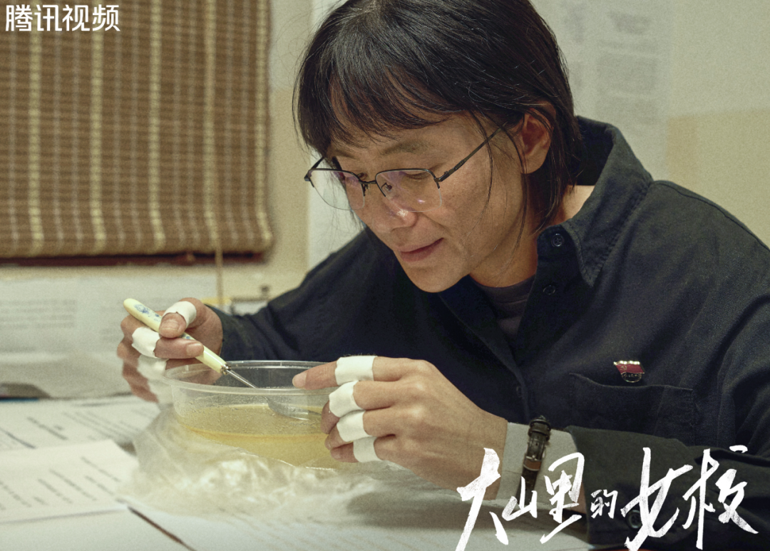 宋佳高媒婆一头,影视作品中,高低暗示力量强弱。此处用近景景别,暗示张桂梅比山还高,是角色形象伟岸的象征。