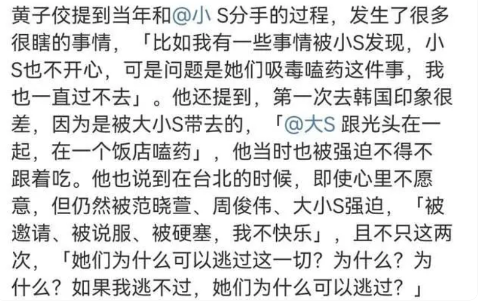 而是将其他艺人拖下水,其中包括自己的前女友小S ,还有号称自己好友的S姐妹团,还有吴宗宪等。