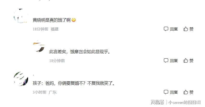 简直就是堪比换脸,这样巨大的变化,也难怪一些网友在这位网友的评论区中留言说:“黄晓明是真的饿了啊!”。