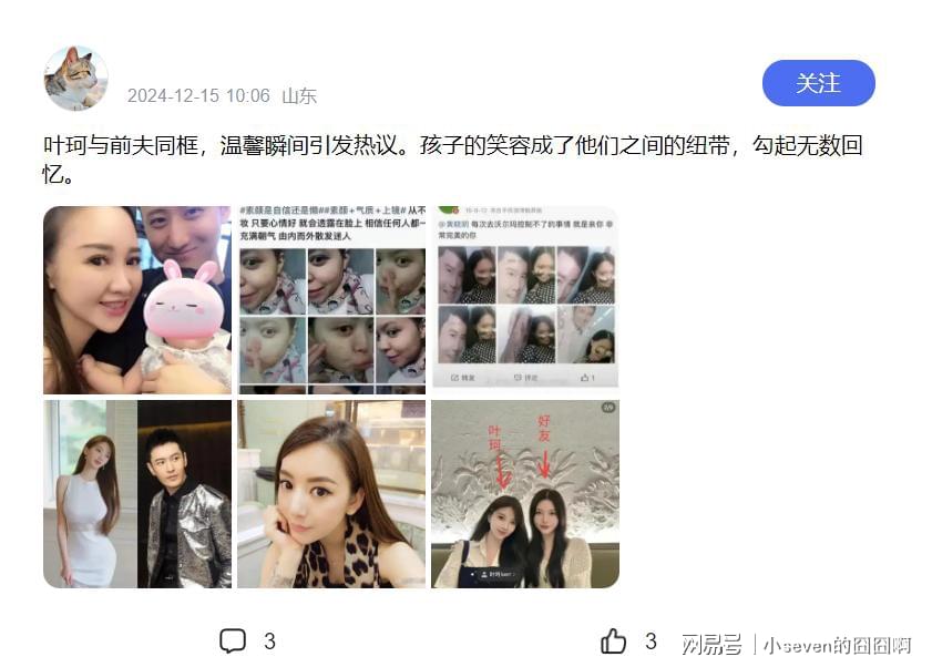 在这张照片中,叶珂和其前夫以及孩子一家三口同框,叶珂笑得很开心。只是如果这位网友不说这是叶珂的话,谁又会认出她居然和黄晓明谈过恋爱的叶珂呢?