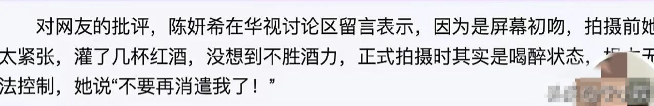 而陈妍希的回应是,自己当时为了进入状态,喝了点。