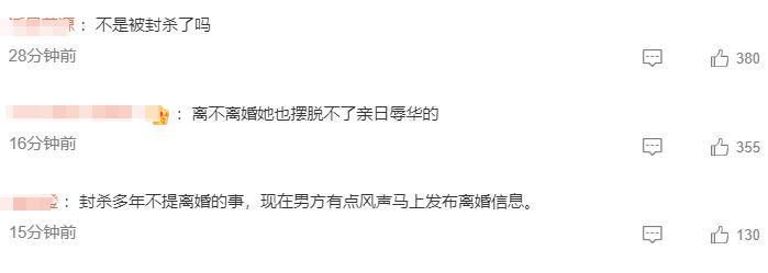 有网友认为,赵薇被封杀了,这次离婚也改变不了曾经的事儿。而且都离婚这么多年了,啥时候不说,非等到黄有龙出事了就马上发布离婚消息吗?