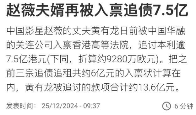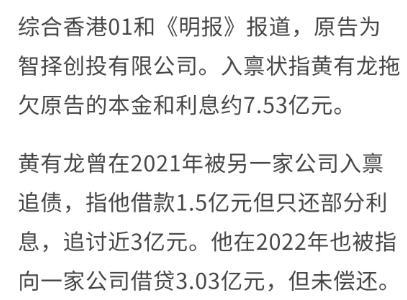 原来前几天黄有龙又被追债了,而且金额高达7.5亿港币,加上之前的三宗债务,加起来约有13.6亿啊!