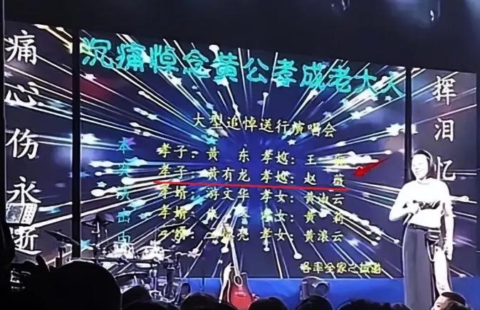 不过在2023年黄有龙父亲去世时,有网友发出了现场照片,在孝子和孝媳这一栏里还是写着黄有龙和赵薇的名字。