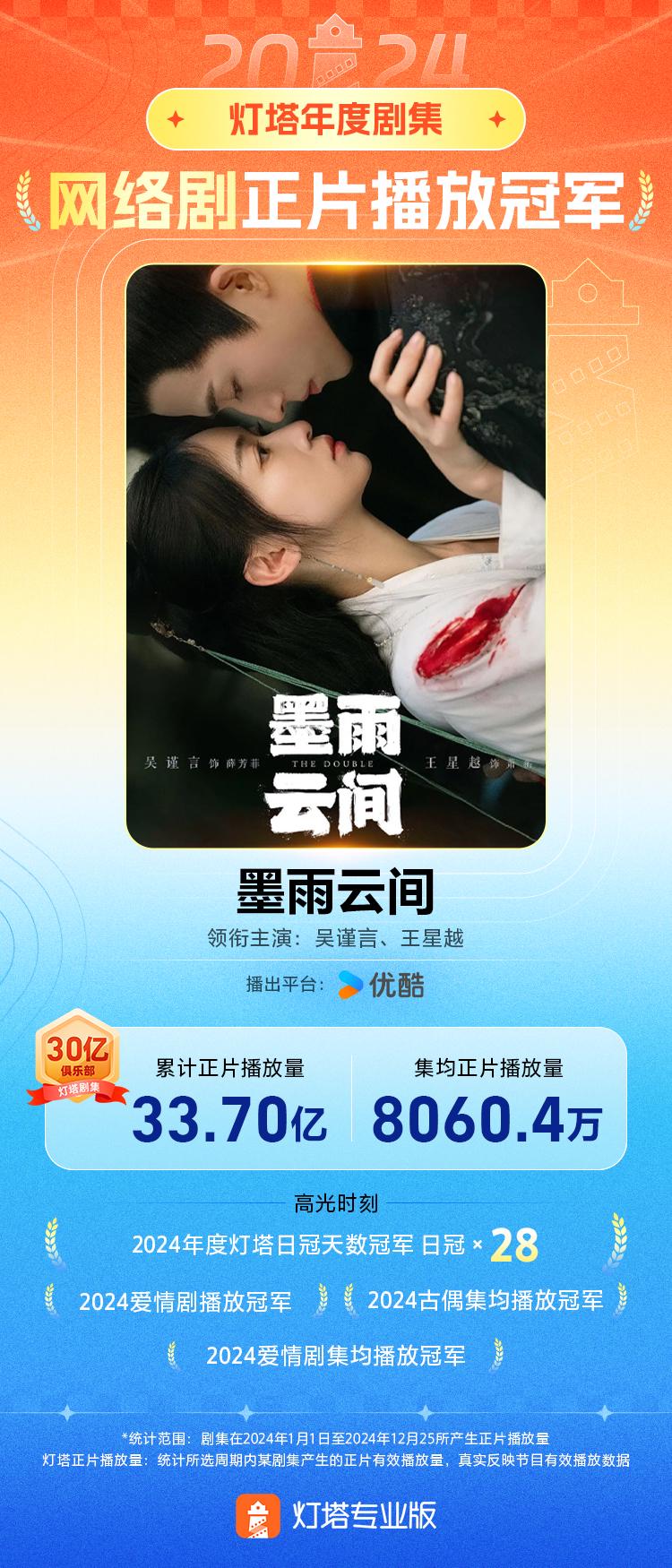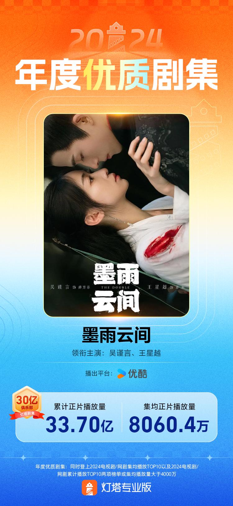 NO.1《墨雨云间》全网正片播放量33.70亿
