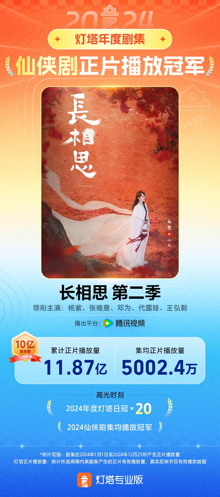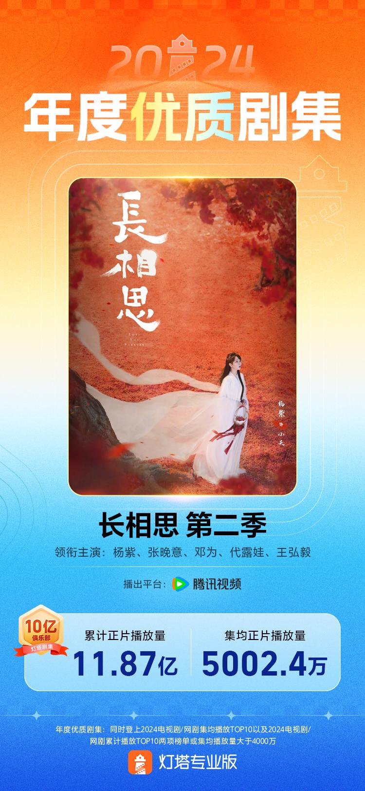 NO.3 《长相思 第二季》集均正片播放量5002.4万