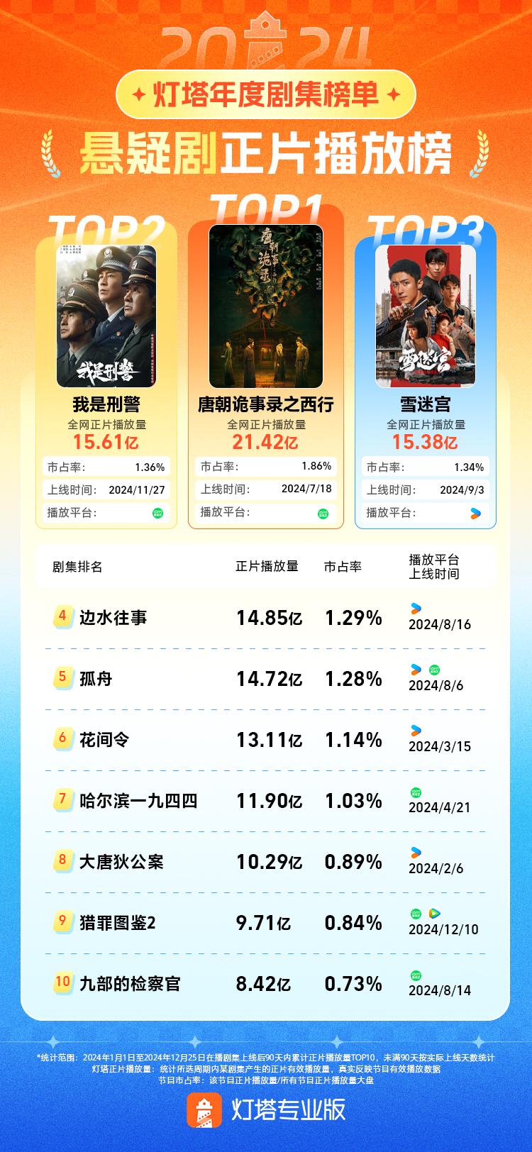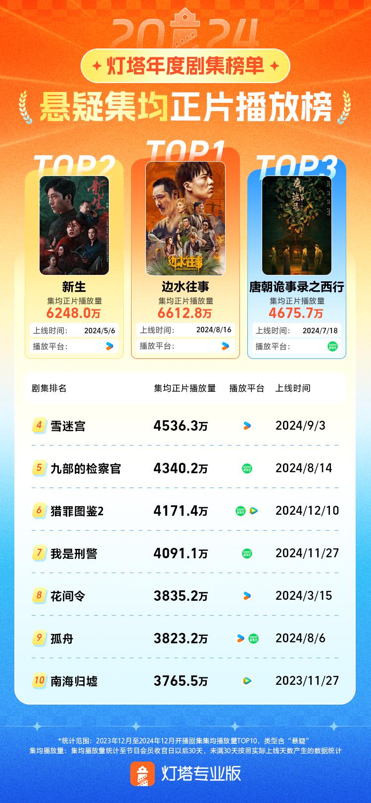 2024悬疑集均正片播放量·剧集总榜TOP10