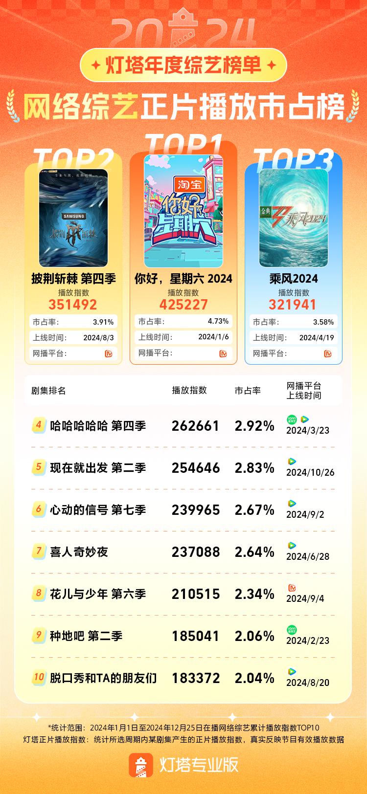 网播榜单 | 2024年度剧综漫全面盘点,17部优质剧集认证,动漫播放冠军首发!