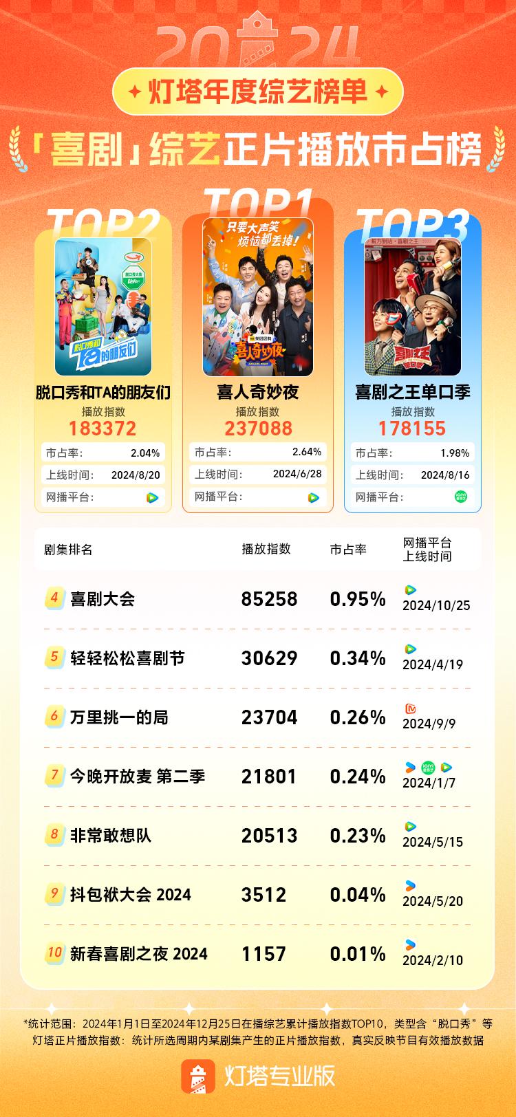 2024综艺市占率·“喜剧”综艺榜单TOP10