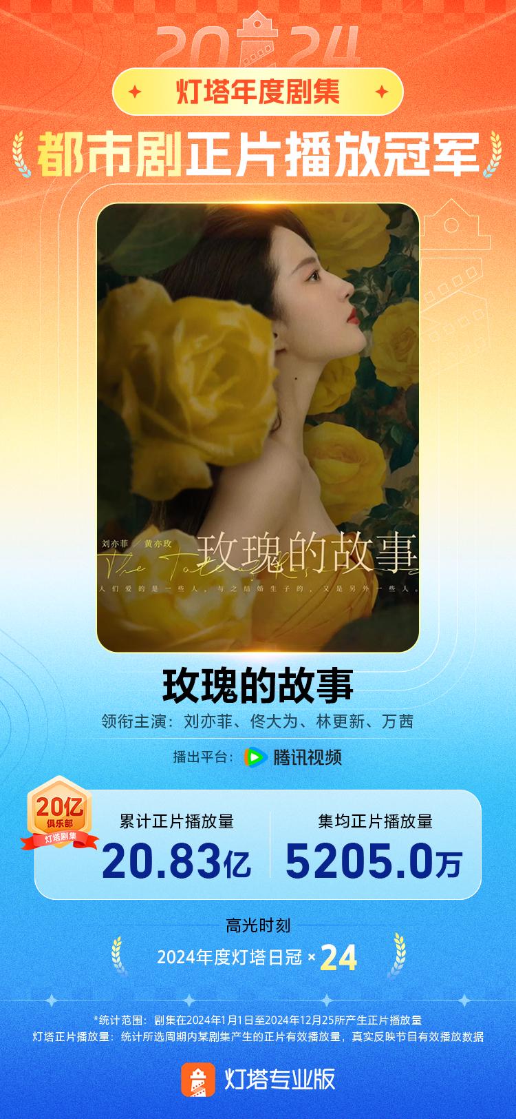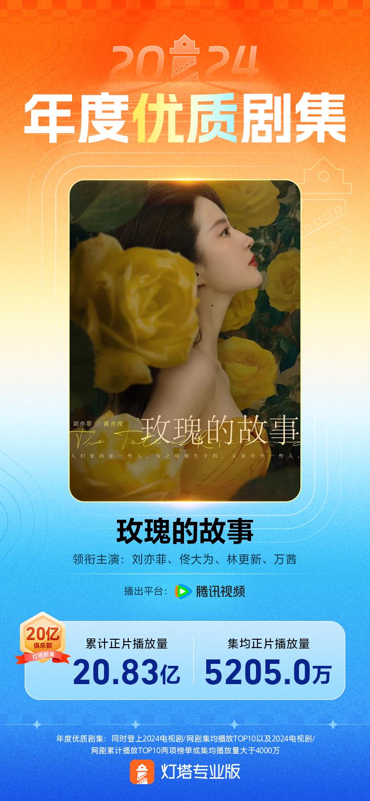 NO.1《玫瑰的故事》全网正片播放量20.82亿