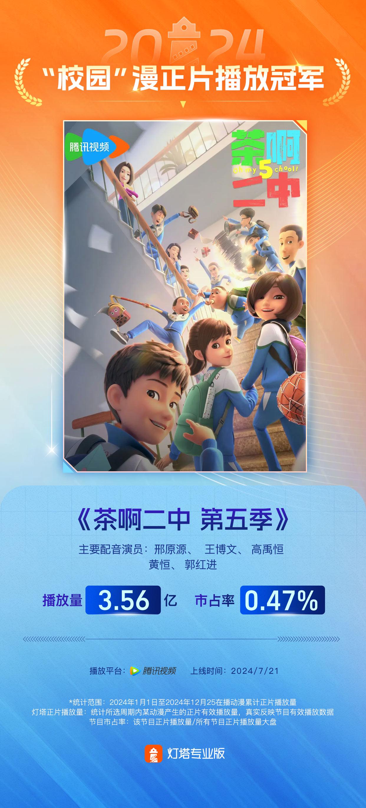 动漫剧集《茶啊二中 第五季》灯塔累计正片播放量达3.56亿