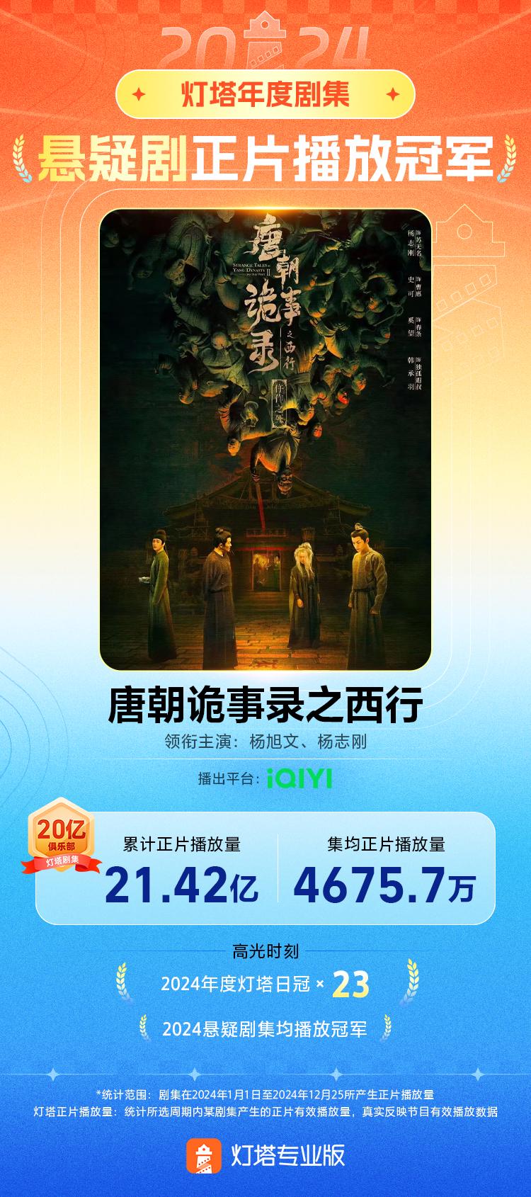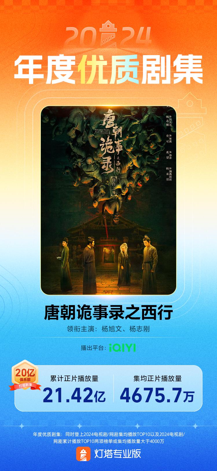 NO.1《唐朝诡事录之西行》全网正片播放量21.42亿