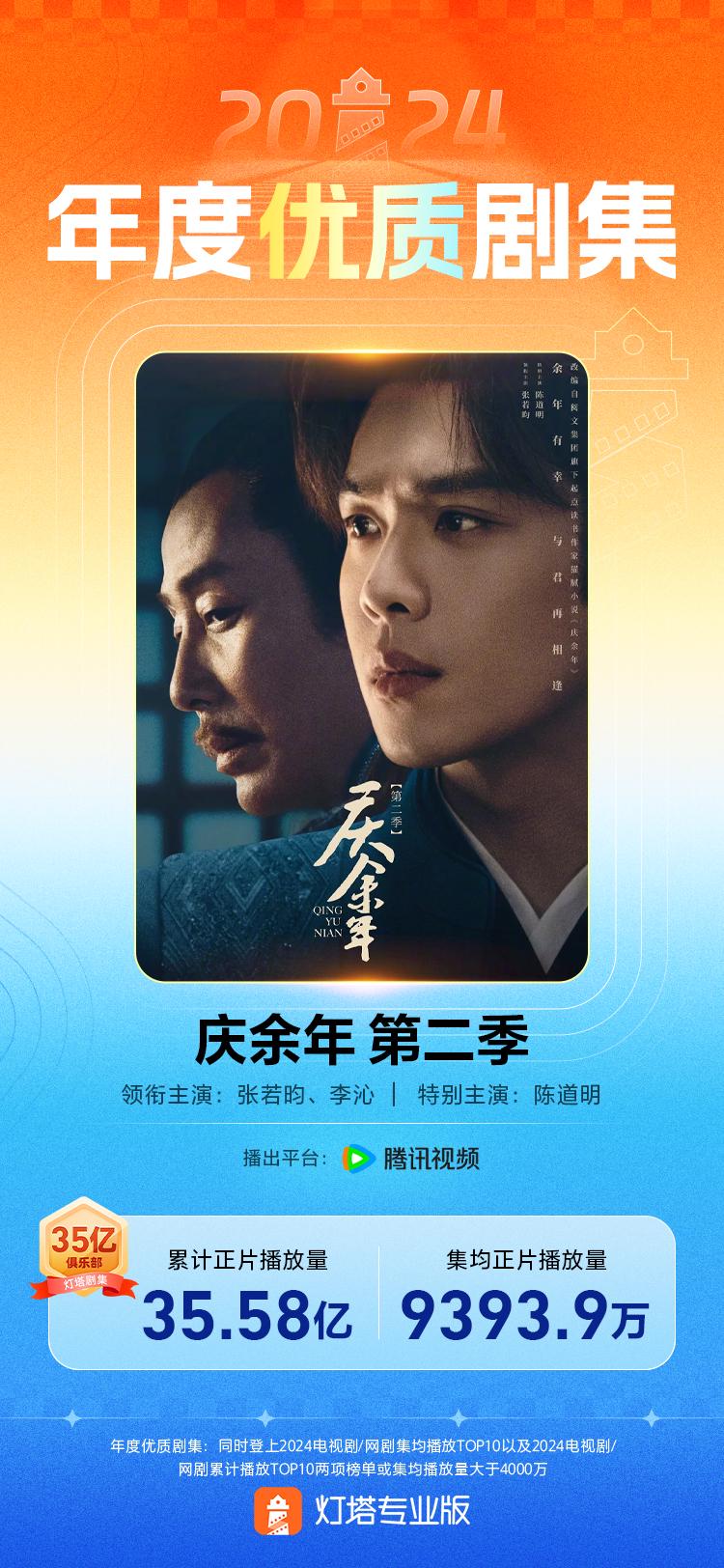 NO.1《庆余年 第二季》全网正片播放量35.58亿