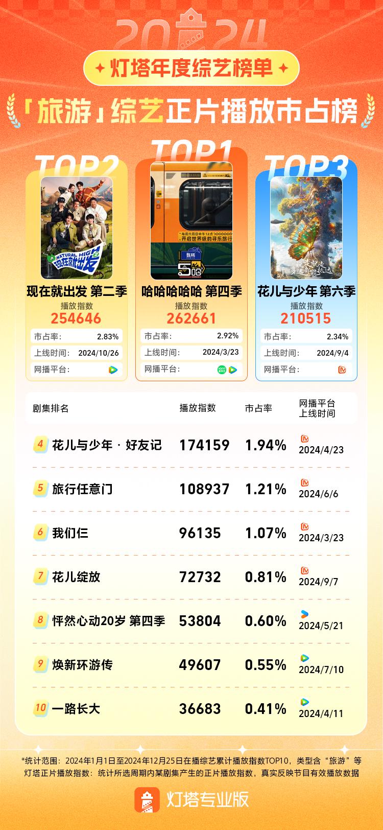 2024综艺市占率·“旅游”综艺榜单TOP10