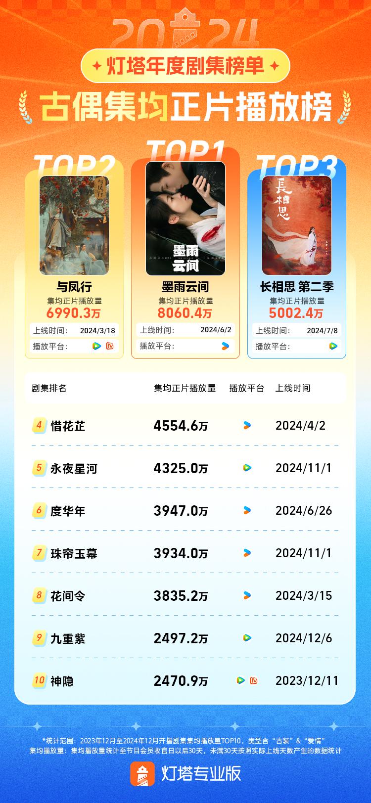 NO.1《墨雨云间》集均正片播放量8060.4万