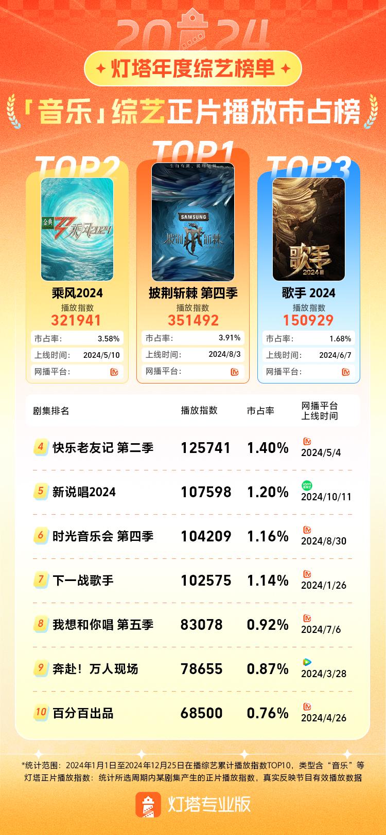 2024综艺市占率·“音乐”综艺榜单TOP10