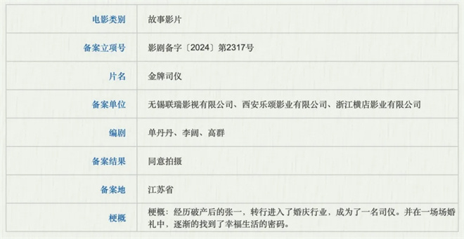 2023年上映的《银河写手》让观众记住了单丹丹、李阔两位年轻创作者。此次这对情侣搭档二度联手带来的新片将创作视角转向婚庆行业,延续《银河写手》的喜剧风格,聚焦小人物的悲欢离合,讲述作为婚庆司仪的张一如何在一场场婚礼活动中,摸索出幸福生活的诀窍的故事。