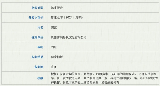 为纪念遵义会议召开90周年,由博纳影业有限公司出品的战争史诗影片《四渡》,讲述了红军长征时期,发生在川、黔、滇边境四渡赤水的故事。四渡赤水作为中***事史上一个令人难以置信的奇迹,在片中将会如何呈现,是本片的一大看点。