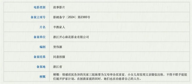 据悉,本片讲述了情感状况各异的吴家三姐妹在为父母举办双喜宴时发生的令人啼笑皆非的家庭故事。