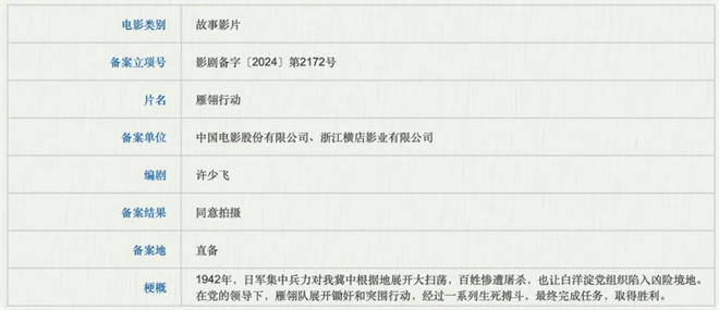 本片由中影与浙江横店影业联合备案,编剧是曾编写过《万物生长》、《奇门遁甲》的许少飞。影片以1942年冀中根据地的抗日斗争为背景,讲述了雁翎队在党的领导下,英勇展开锄奸和突围行动,最终取得胜利的故事。