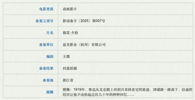 有网友评价说从《长安三万里》的李白到《朝花夕拾》的鲁迅,追光打造的堪称追光语文课系列。过去甚少以动画形象出现的鲁迅,将会如何被呈现在大银幕之上,引人遐想。