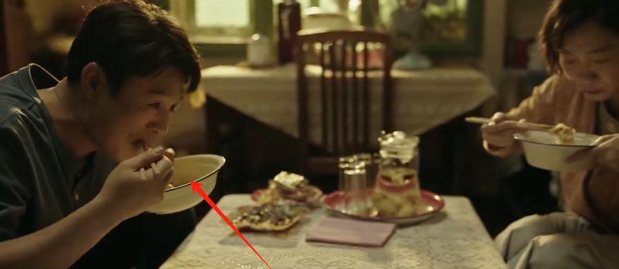 在另一场吃盒饭的戏里,他的一个细节动作,足以见得他的成功!